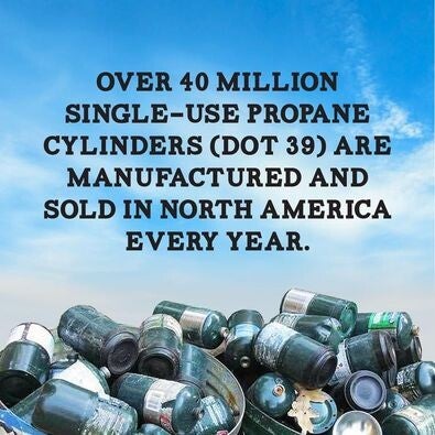 Single use propane cylinders are not designed to be used with refill adapters, and doing so can weaken structural integrity and create a safety hazard.